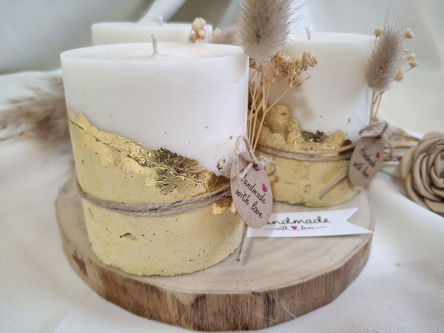 Edle Kerze auf gelben Betonsockel