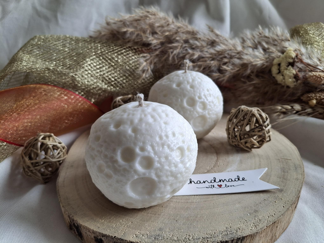 Ob als kleines Highlight in deiner Tischdekoration, als Geschenk oder für einen Moment der Achtsamkeit – die Mondkerze sorgt für sanftes Licht und eine stimmungsvolle Atmosphäre.